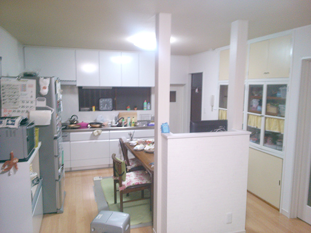 ほとんど使っていない応接間とキッチンの間仕切壁を取り、LDKとして、広く開放的なスーペースにしたい。
